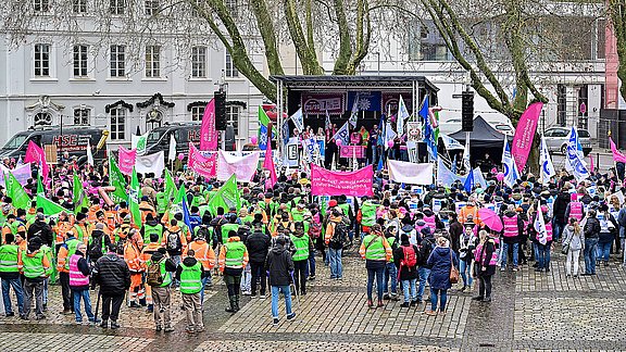 Über 16.000 Beschäftigte des öffentlichen Dienstes haben in Düsseldorf für höhere Einkommen demonstriert. Der dbb-Chef warnt die Länder eindringlich vor weiteren Blockaden.